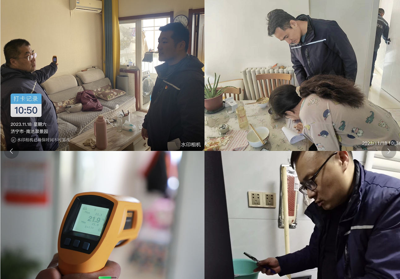活動開始前,四和供熱黨支部書記向全體黨員闡述了此次活動的意義和目的,明確了活動的要求和安排,表達了為用戶提供優(yōu)質(zhì)供熱服務(wù)的堅定決心和信心。隨后,領(lǐng)導(dǎo)班子成員帶隊前往九九花園、鳳凰城、水韻城等多個供熱轄區(qū)開展入戶走訪活動,并對邊角樓頭、頂層及底層用戶進行重點摸排走訪。在入戶走訪的過程中,黨員志愿者們主動亮身份、當先鋒,積極認領(lǐng)工作任務(wù),分組分樓逐一開展排查,現(xiàn)場測量室內(nèi)溫度、詢問用戶家中供熱情況,幫助用戶檢修室內(nèi)采暖設(shè)施,面對面、心貼心地與用戶進行“零距離”溝通交流,傾聽記錄用戶的意見建議,為用戶講解供熱相關(guān)的知識和注意事項,積極宣傳推廣“濟時熱”小程序,讓用戶體驗更加快捷、高效的報修服務(wù)。同時發(fā)放集合了水、電、氣、暖等多種民生服務(wù)聯(lián)絡(luò)方式于一體的最新優(yōu)化升級的綜合便民服務(wù)卡,方便用戶咨詢解決各類訴求問題。